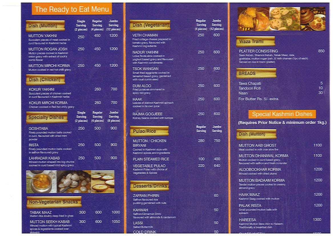 Kashmiri Food Menu : Kashmiri food originated from the picturesque kashmir valley, the crown of india that lies in the lap of the himalayas.kashmir not only offers mesmerising locations but also a wide.